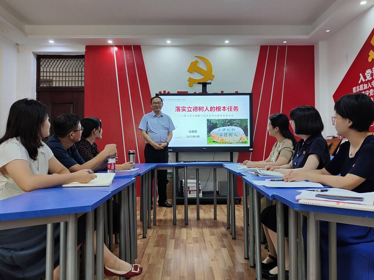 会议紧紧围绕学习贯彻习近平新时代中国特色社会主义思想,聚焦学思想、强党性、重实践、建新功总要求。首先由支部书记徐秉国同志作专题学习辅导,他以“落实立德树人的根本任务——深入学习理解习近平总书记教育重要论述”为题,从战略视野、内容体系、重大意义三个维度对习近平总书记教育重要论述作了全面系统阐释。接着,徐秉国同志通报了支部委员会查摆问题情况,提出了整改措施,支部党员就抓实问题整改推心置腹提了建议。最后,支部成员严肃认真开展了批评与自我批评。大家一致表示:要持续夯实理论武装,在以学铸魂上再下功夫见实效,抓好习近平新时代中国特色社会主义思想的系统学习,做好学习贯彻习近平新时代中国特色社会主义思想的深化、内化、转化工作,坚持学而信、学而思、学而行,坚持学思用贯通、知信行统一;要持续推动能力升级,在以学增智上再下功夫见实效,把习近平新时代中国特色社会主义思想的世界观、方法论和贯穿其中的立场观点方法作为研究问题、解决问题的“总钥匙”,切实提高创新思维,增强工作创造性;要持续推动作风转变,在以学正风上再下功夫见实效,多到学生中调研,建立定期与学生座谈交流制度,真诚倾听学生心声、真实反映学生愿望、真情关心学生成长,强化宗旨意识,解决学生的“急难事”,办好学生的“暖心事”,做学生的知心人,将立德树人真正落到实处。